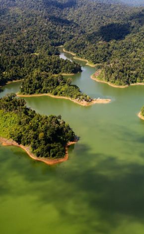 Visit Kenyir Lake (Tasik Kenyir) for a mix of emerald sea, golden sunlight and rich marine and coral islands in the world's oldest tropical rainforest! Best for off the beaten path nature adventure in stunning green landscapes.
